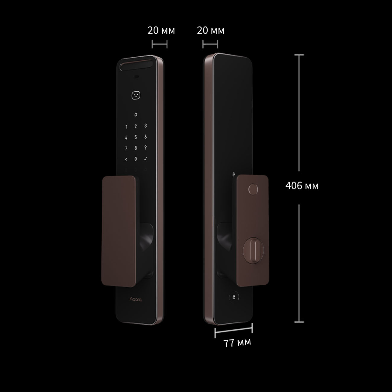 Подходит для входных дверей толщиной 70-110 мм. Обладает современным лаконичным дизайном, четкими линиями и гармонично вписывается в дизайн двери. Внешняя алюминиевая ручка-штанга с PVD покрытием (не выцветает 20 лет) и имеет дополнительную защиту от влаги, внутренняя ручка на планке выполнена из фрезерованного алюминия. Большой замок из нержавейки с функцией дожима двери. Есть приложение для IOS и Android - USmart Go.