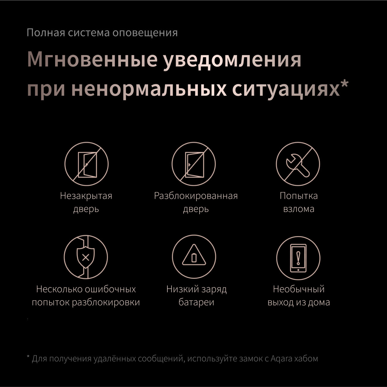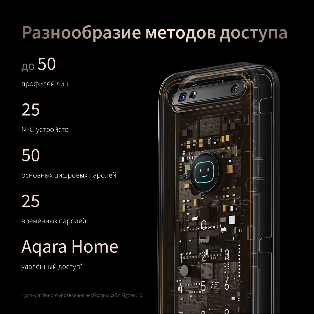 Способы разблокировки- Удалённо через приложение Aqara Home - Отпечаток пальца - NFC метки (2 шт. в комплекте) - Постоянный пароль - Одноразовый пароль - Временный пароль - Механический ключ - Через HomeKit, включая новейшую функцию Apple Home Key - Через Google Assistant