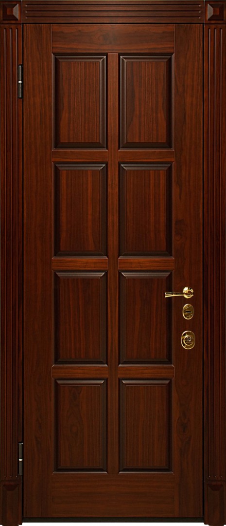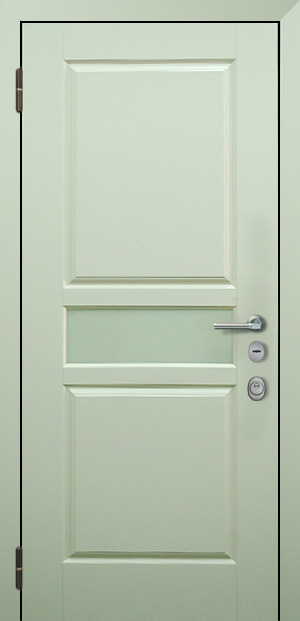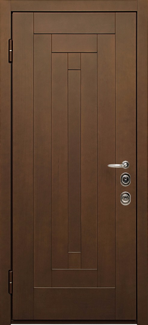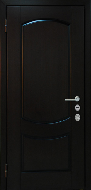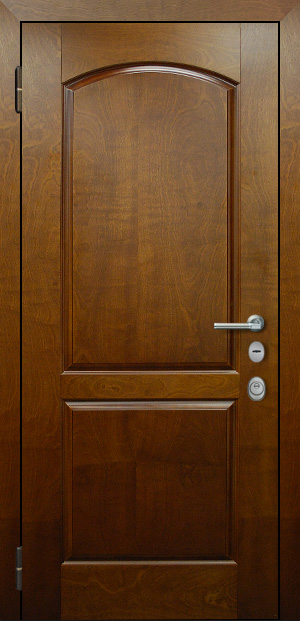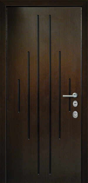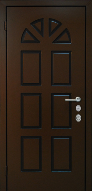- Рама из гнутого профиля 2мм с притвором и наличником, дверное полотно толщиной 50мм из листа металла 2,5мм (с внешней стороны) c каркасом из гнутого профиля. 2 вертикальных ребра жесткости и 8 горизонтальных.