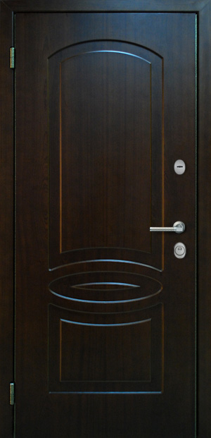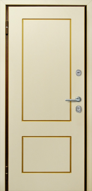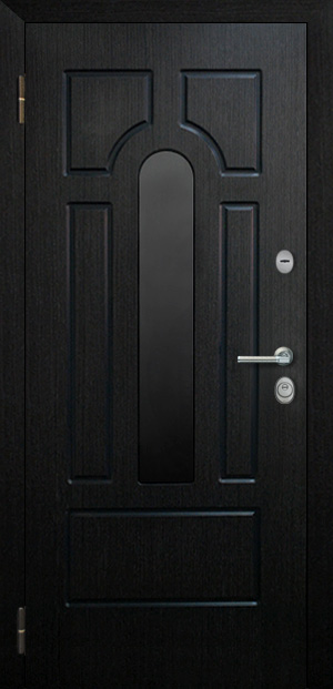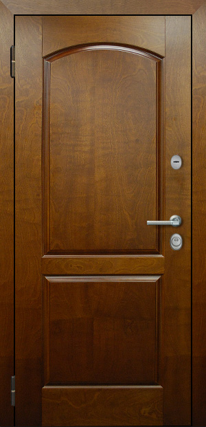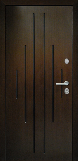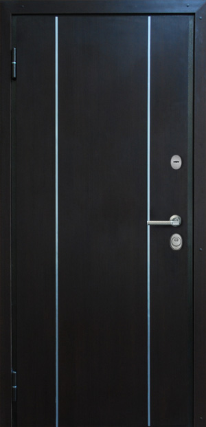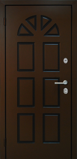 - Рама из гнутого профиля 2мм с притвором и наличником, дверное полотно толщиной 50мм из листа металла 2,5мм (с внешней стороны) c каркасом из гнутого профиля. 2 вертикальных ребра жесткости и 8 горизонтальных.
